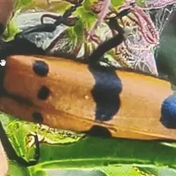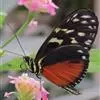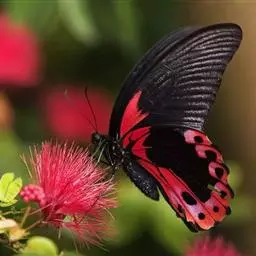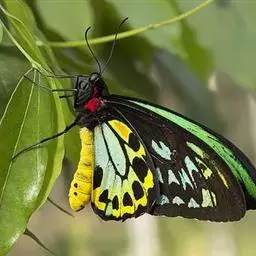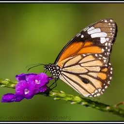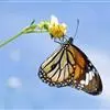 黑脉金斑蝶:翅阔8.6-12.4厘米。雄蝶较雌蝶为大。成年蝶颜色鲜艳,翅膀上有显眼的橙色及黑色斑纹…