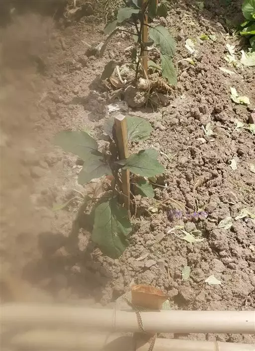 ⑶剪枝:茄子是双杈分枝作物,一般双干整枝,即对茄以上留两个枝条,每枝留一个茄,每层留两个茄。每级发出的侧枝在茄子长到一半大时留2-3片叶摘心。