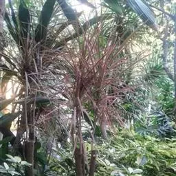 密叶百合竹 多年生长绿灌木或小乔木。叶线形或披针形,全缘,浓绿有光泽,松散成簇;花序单生或分枝,常反折,花白色,为雌雄异株。花序单生或分枝,小花白色。其斑叶品种金边百合竹也见于栽培,叶缘有金黄色纵条纹;金心百合竹,叶缘绿色,中央呈金黄色。