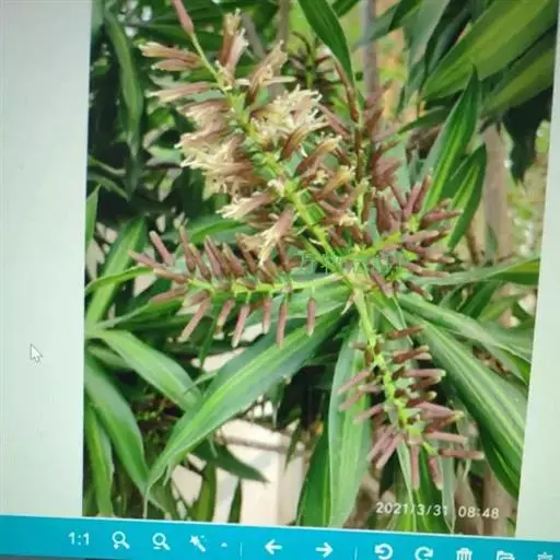 百合竹,为龙舌兰科龙血树属的常绿灌木,宿根性,叶片碧绿而富有光泽。叶片中间有金黄色的条纹,甚是美丽,是家庭常见栽培观叶植物之一,其也开花,花为白色,较小,雌雄异株,花序比较长,能达半米。百合竹的适应性比较好,能在室内半阴或散射光照下长期生长。分布于马达加斯加。百合竹是极受人们喜爱。此类植物叶色殊雅,为室内观叶佳品。原产马达加斯加,现作为观叶植物广泛栽培,其叶片潇洒飘逸,耐荫性好,适合室内观赏,还可水培欣赏。