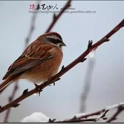 栗斑腹鹀:属小型鸣禽。体重19-25克,体长145-167毫米。头顶至背栗红色,眼先和颧纹黑褐色,…