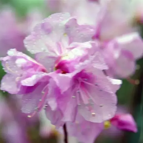 兴安杜鹃是杜鹃花科、杜鹃花属半常绿灌木,高可达2米,分枝多。叶片近革质,椭圆形或长圆形,…