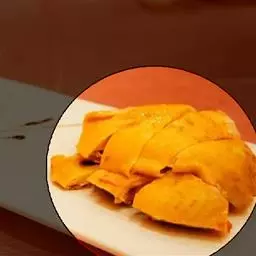 3.鸡胸脯朝上放在鱼池盘上,抹匀鸡蛋糊,上展蒸 3小时左右。