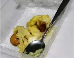 2.鸡蛋 1个,搕入碗内,加淀粉、芝麻、精盐、蒜末、芝麻油、酱油、鸡肫末调和成糊。