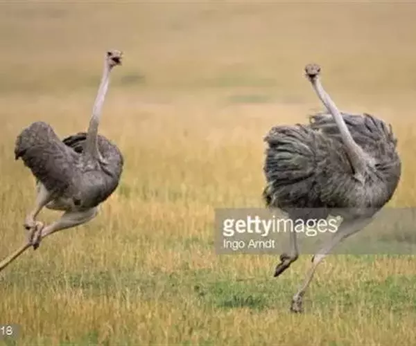 美洲鸵鸟走路的时候,总是紧闭着两翼,忽前忽后地摇摆着颈项,健壮有力的双足,跨一步足有1米多远,真有一种昂首阔步、气概不凡的“巨人”风度,当它奔跑时,背部两翼便伸展开来,头和颈项弯了下去。据目击者言,它的踩踏力是可怕的。在南美洲常常看到一只狗或其他动物被它斗败、踏死的惨景。