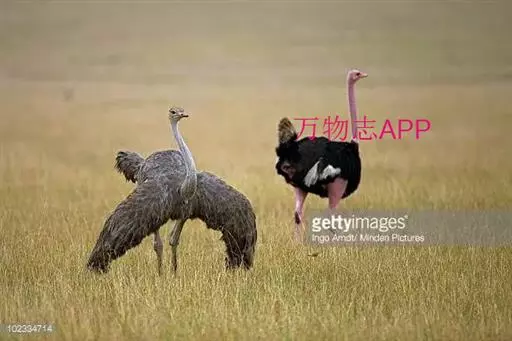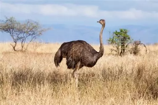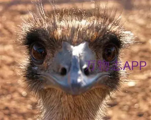 其形态很象非洲鸵鸟,它也有一只细长的腿、细长的头颈,弧形的背脊、徒有其名的翅膀,也是过着一雄多雌的群体生活,雌鸟管生蛋,雄鸟管孵卵。但是它和非洲鸵鸟有区别,一是其脚爪为3趾,而非洲鸵鸟为2趾,二是形体比非洲鸵鸟小,高度通常为1.5米,重20千克,三是羽毛没有非洲鸵鸟长。羽色多按身体部位而异,有的是油滑的棕色,有的是黑色和灰色。