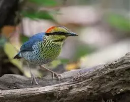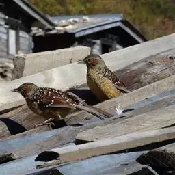 大噪鹛:中型鸟类,体长32-36厘米。额至头顶黑褐色,背栗褐色满杂以白色斑点,…