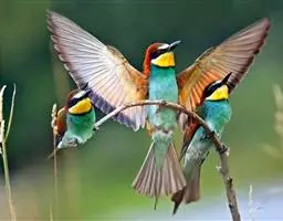 蓝颊蜂虎:是蜂虎科、蜂虎属的鸟类,共有2个亚种。体长27-33厘米,翼展46-49厘米,…