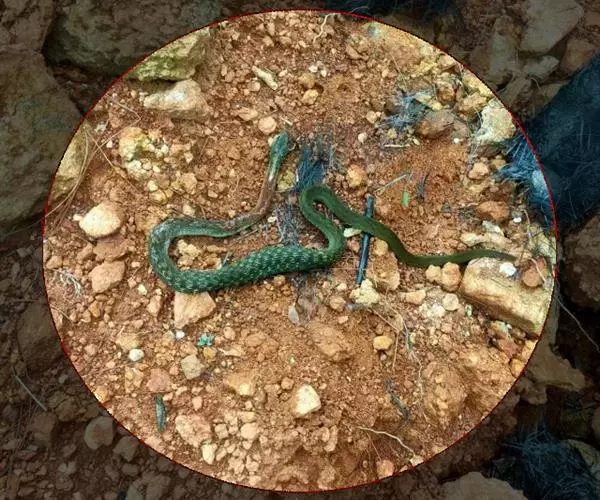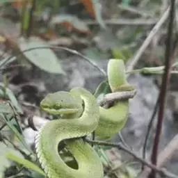 白唇竹叶青是卵胎生,7—8月产仔,每产7—8条,最高可产14条。刚出生的小蛇就有毒牙,也能伤人。