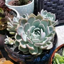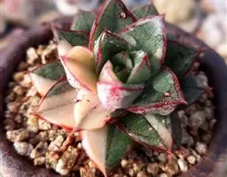 大和锦是景天科拟石莲花属的多肉植物。肉质叶排成紧密的莲座状,广卵形至散三角卵形,背面突起呈龙骨状,…