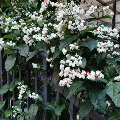 红萼龙吐珠马鞭草科大青属常绿木质藤本。叶对生,纸质,具柄,卵状椭圆形,全缘,先端渐尖,基部近圆形。…