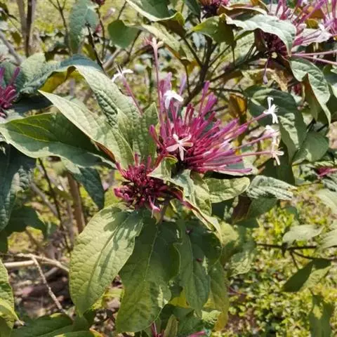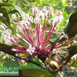 烟火树 Merr.)是唇形科、大青属常绿灌木或小乔木,株高可达4米。幼枝方形,墨绿色。叶对生,…