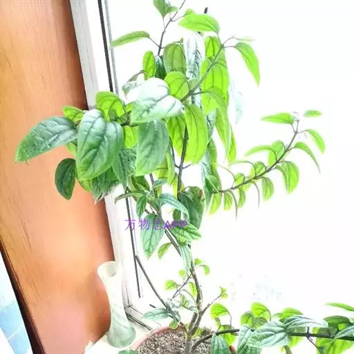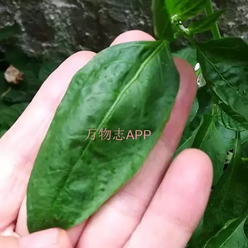 叶片纸质,狭卵形或卵状长圆形,长4-10厘米,宽1.5-4厘米,顶端渐尖,基部近圆形,全缘,表面被小疣毛,略粗糙,背面近无毛,基脉三出;叶柄长1-2厘米。