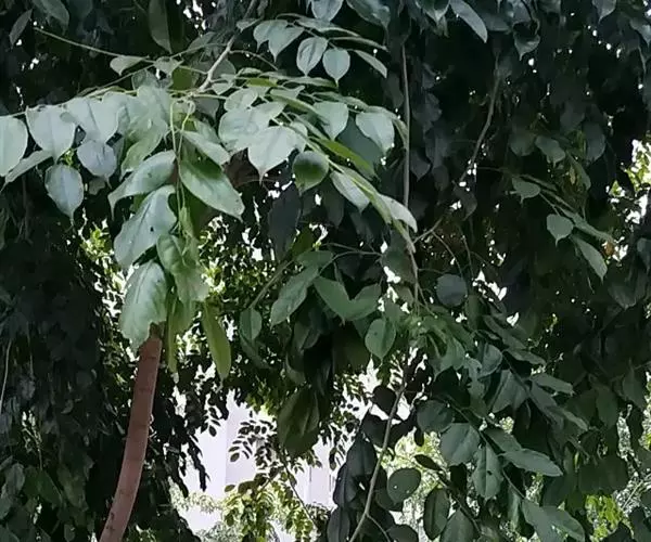 乔木,高15-25米,胸径达40厘米;树皮灰色。羽状复叶长15-30厘米;托叶早落;小叶3-5对,卵形,长6-11厘米,宽4-5厘米,先端渐尖,基部圆形,两面无毛,叶脉纤细。