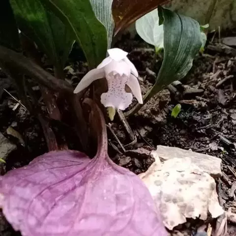 独花兰(学名:Changnienia amoena S. S. Chien)是兰科、独花兰属的国家二级保护植物 ,也是中国的特有物种 。假鳞茎近椭圆形或宽卵球形,长1.5-2.5厘米,宽1-2厘米,肉质,近淡黄白色,有2节,被膜质鞘。叶1枚,宽卵状椭圆形至宽椭圆形,背面紫红色。花葶长10-17厘米,紫色,具2枚鞘;鞘膜质,下部抱茎;花大,白色而带肉红色或淡紫色晕,唇瓣有紫红色斑点;萼片长圆状披针形;花瓣狭倒卵状披针形,略斜歪,长2.5-3厘米,宽1.2-1.4厘米,先端钝,具7脉;唇瓣略短于花瓣,3裂。花期4月。