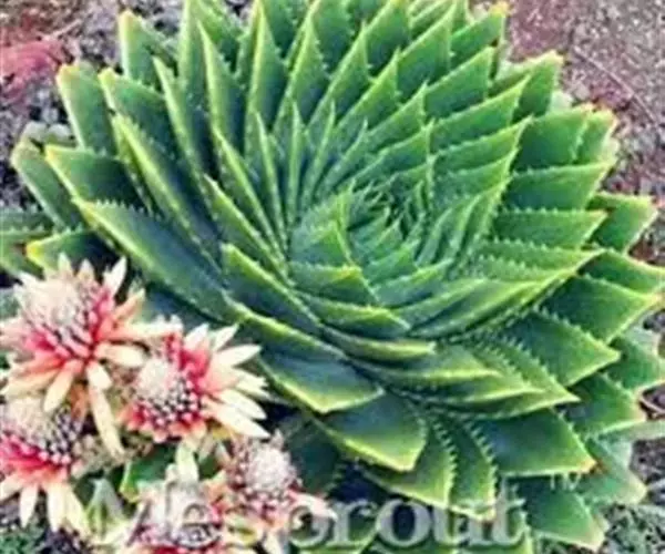 多叶芦荟(学名:Aloe polyphylla Pillans):是一种无茎多浆植物。每株是一个独立单生莲座丛,植株直径达高30厘米,宽90厘米立。叶呈莲座状螺旋形排列,翠绿色至灰绿色,肉质柔软,多汁肥厚。叶缘有不规则锯齿。成型后每株130-150枚叶片,成螺旋状排列,螺旋有时为顺时针,有时为逆时针。花茎高60厘米,花红色至肉粉红色,花柄有分枝。每条分支末端开一花,花朵紧凑,花期春季至初夏。