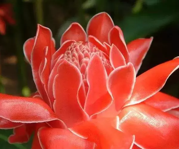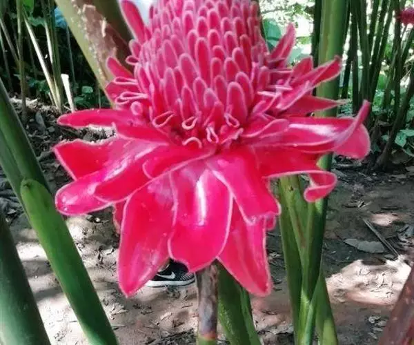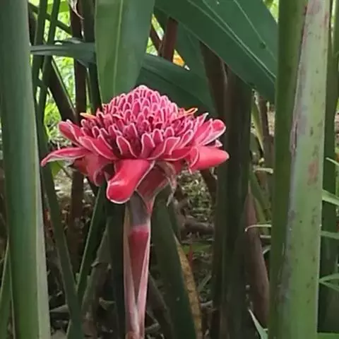 瓷玫瑰(学名:Etlingera elatior)是姜科艳山姜属多年生草本植物,植株丛生,株高3-7米,叶互生,二行排列,长圆状披针形,叶色深绿,光滑,长50厘米左右,宽15厘米左右,头状花序由地下茎抽出,玫瑰花型,花瓣革质,表面光滑,亮丽如瓷,有50-100瓣不等。花期夏季。
