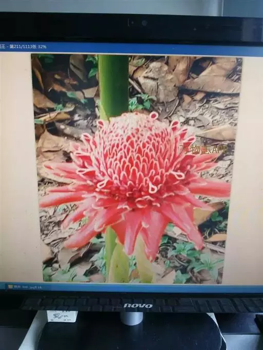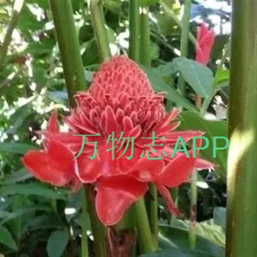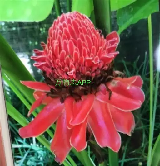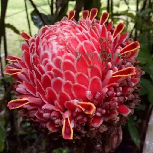 姜科。直立强壮草本, 高达5m。原产马来西亚,云南引种栽培。花期4~6月。本种花序极美丽,苞片发瓷质亮光,故得名。