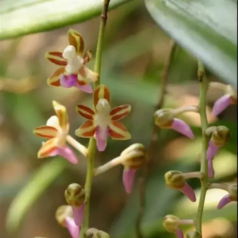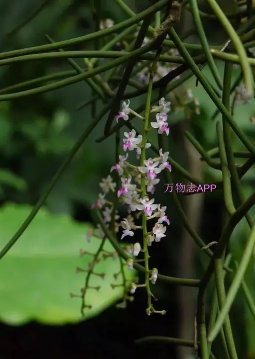 红花隔距兰 Garay):植株通常悬垂。茎细圆柱形,长达70厘米,粗3-4毫米,分枝或不分枝,…