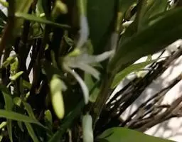大序隔距兰 Garay):茎直立,扁圆柱形,伸长,达20余厘米,通常粗5-8毫米,被叶鞘所包,…