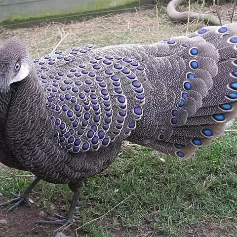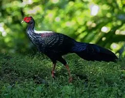 黑长尾雉大型鸡类,体长53~88厘米。雄较雌大。雄鸟通体紫蓝色,脸鲜红色,翅上有一条显著的白色翅斑…