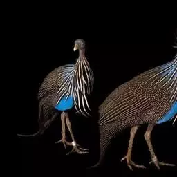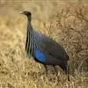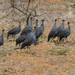 鹫珠鸡:是珠鸡科中体形最大的一种,因头颈部像兀鹫而得名。雌雄羽色相似,为黑色基底上遍布白色点斑,…