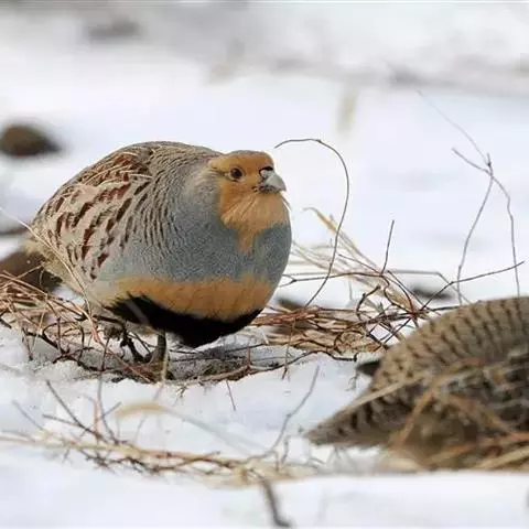 褐胸山鹧鸪:雄鸟体长22厘米,体重310克;雌鸟体长23厘米,体重220-275克。前额皮黄白色,…