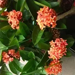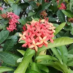 海南龙船花(Ixora hainanensis Merr.),灌木;仅冠筒喉部被疏毛,全株无毛。