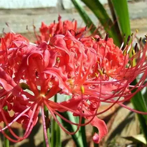 石蒜 Herb.):鳞茎近球形。秋季出叶,叶狭带状,顶端钝,深绿色,中间有粉绿色带;花茎高约30厘…