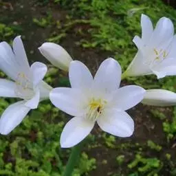 长筒石蒜草本,地生。鳞茎卵球形;叶披针形;伞形花序,有花5-7朵,花白色;花被裂片腹面稍有淡红色条纹,…