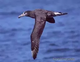 近种区别:黑脚信天翁与短尾信天翁亚成体极相似,但短尾信天翁亚成体嘴、脚均不为黑色,身上有明显的白斑,而且越接近成鸟白斑越大;另外短尾信天翁个体亦较大,亦可明显与之区别;短尾信天翁成鸟体羽基本为白色,嘴粉色,个体大,容易区别。