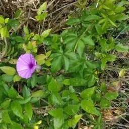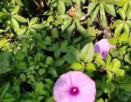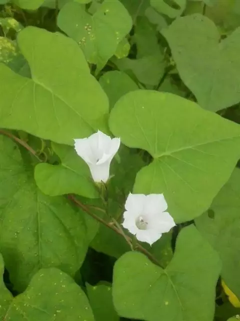 番薯 Lam.),多年生草质藤本植物,具有乳汁;其块根为白、红或黄色;茎生不定根;叶呈宽卵形或卵状心形,叶色有浓绿、黄绿、紫绿等,前端渐尖,基部呈心形或近平截;花冠为粉红、白、淡紫或紫色,呈钟状或漏斗状,无毛;蒴果呈卵形或扁圆形;由于番薯是于异花授粉,自花授粉常不结实,所以有时只见开花不见结果。 种子1-4粒,通常2粒,无毛。番薯原产于南美洲及大、小安的列斯群岛,现已广泛栽培在全世界的热带、亚热带地区,但在一些较北的地区如黑龙江省也已栽种成功,中国大多数地区都普遍栽培。番薯适应性强,喜温暖多光而不耐霜冻,抗旱耐碱,适种于肥沃而排水良好的砂质壤土,是一种易于保收的作物。番薯是一种高产而适应性强的粮食作物,在中国南方,有“一造番薯半年粮”的说法, 与工农业生产和人民生活关系密切;块根除作主粮外,也是食品加工、淀粉和酒精制造工业的重要原料;根、茎、叶可作