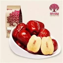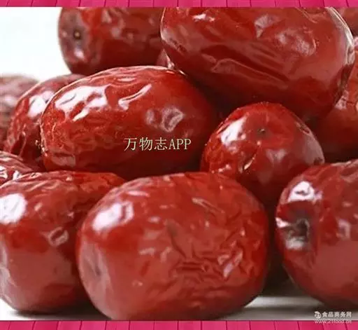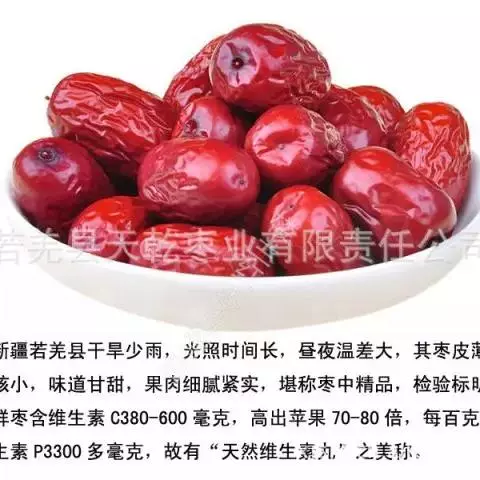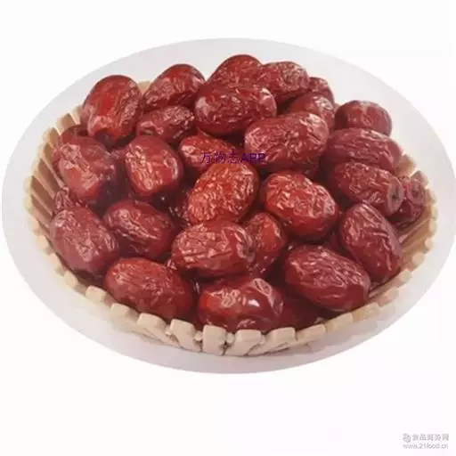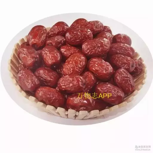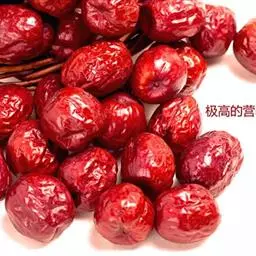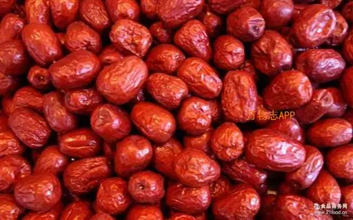 红枣又称大枣、干枣、枣子等。红枣富含蛋白质、脂肪、糖 类、胡萝卜素、B族维生素、维生素C、维生素P以及磷、钙、铁等成分,其中维生素C的含量在果品中名列前茅,有“天然维生素丸”之美称。
