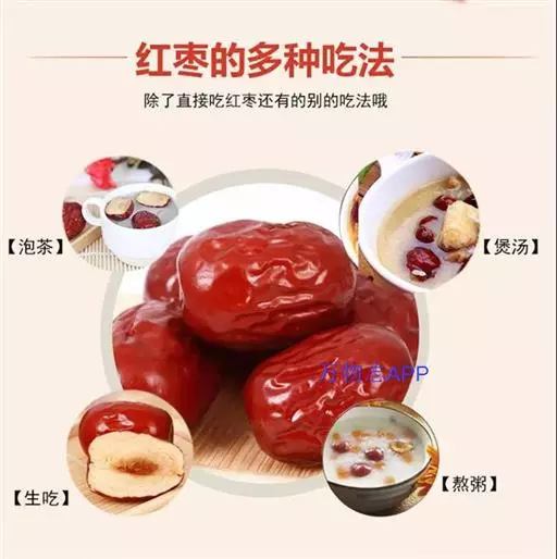 2、大枣有益健康,但并非多多益善。中等大小的红枣,一次食用最好别超过15个,过量食用有损消化功能,引起胃酸过多和腹胀。