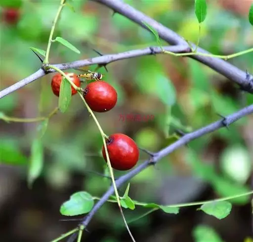 酸枣 Hu ex H.F.Chow.),鼠李科枣属木本植物。小枝呈“之”字形弯曲,褐色,托叶刺有2种,…