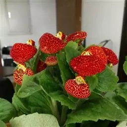 荷包花 蒲包花正值春节应市,奇特的花形,惹人喜爱。也是很好的礼仪花卉,送上一盆鲜红的蒲包花,使节日的气氛更为浓厚。若摆放窗台、阳台或客室,红花翠叶,顿时满室生辉,热闹非凡。在商厦橱窗、宾馆茶室、机场贵宾室点缀数盆蒲包花,绚丽夺目,蔚为奇趣。