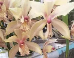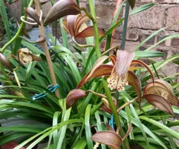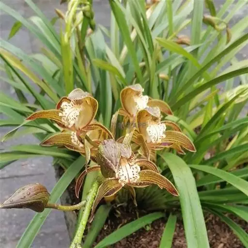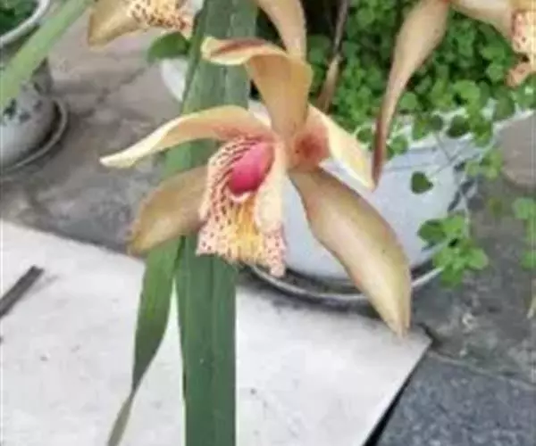 花盆宜选择直径15-20厘米的高筒花盆,每盆2-4苗。虎头兰喜较高的空气湿度,春夏秋三季,在给予根部充足水分的同时,应经常叶而喷水。但在早春开花后,虎头兰的短暂休眠期内,必须少浇水,待新芽生长出较大的新根时才能多浇水。虎头兰植株大,生长繁茂,需要肥料比一般明显多,故生长季节应加强施肥。一般可将发酵过的饼肥等与1/3粘土混合,再加水做成直径2厘米左右的球,晒干备用。浇水时要达到一浇即泻,盆内无积水或渗水过慢的现象。家庭用盆不宜过大,用直径25厘米左右的瓦盆较好,每盆3-4株成龄兰,2年后便可增至8-9株,分盆时可一分为二,每盆仍留3-4株。把分盆掰下的老假磷茎进行繁殖若要培养株型较大的兰花,可选用直径30厘米以上的瓦盆,排水层一定要设计好,至少占盆深的1/3,这是栽培虎头兰成功的关键。于春季放在盆面,离开新芽有一定的距离,肥料可缓慢放出养分供兰花生长。每年可施用两次,每盆数粒,也可施用发酵好的液体农家肥,每1-2周一次,还可用喷雾器向叶片及盆面喷洒氮磷钾复合肥,浓度应在3-5%,每周1-2次。秋末停肥。