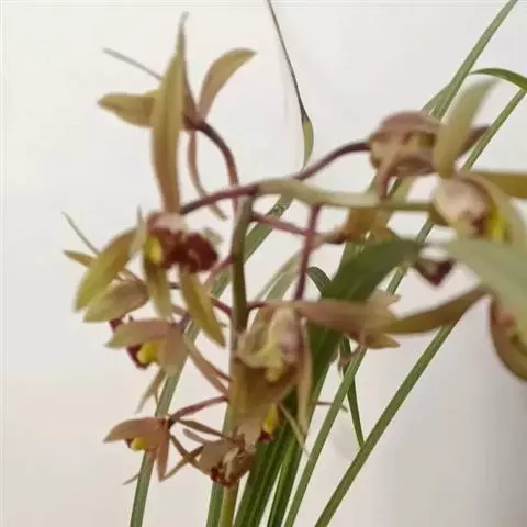 寒兰是兰科兰属的地生草本植物。茎为椭圆形;叶呈带状,尾部修长渐尖,叶脉较明显;每秆花枝开5-12朵,…