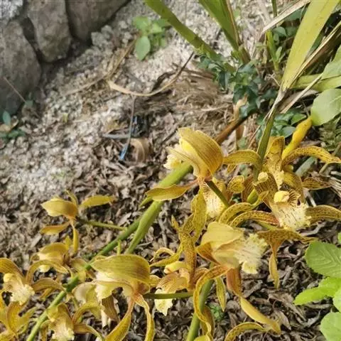虎头兰(学名:Cymbidium hookerianum Rchb. f.):附生草本;假鳞茎狭椭圆形至狭卵形,长3-8厘米,宽1.5-3厘米,大部分包藏于叶基之内。叶4-8枚。花葶从假鳞茎下部穿鞘而出,外弯或近直立;总状花序具7-14朵花;花大,直径达11-12厘米,有香气;萼片与花瓣苹果绿或黄绿色,基部有少数深红色斑点或偶有淡红褐色晕,唇瓣白色至奶油黄色,侧裂片与中裂片上有栗色斑点与斑纹;花瓣狭长圆状倒披针形。蒴果狭椭圆形。花期1-4月。