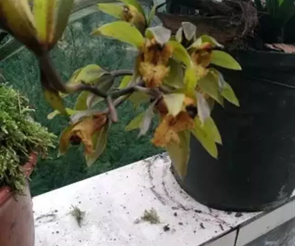 终年都有,高温多雨季节更为猖撅,而以建兰感染尤多。病斑先从叶尖向根茎处延伸,初为褐色,然后逐渐扩大增多,出现许多干黑点,严重时导致整株死亡。防治方法:除积极改菩环境条件外,在发病期内,可先用50%甲基托布津可湿性粉剂800-1500倍液喷治,每7-10天一次;然后再辅以1%等量式波尔多液,每半月一次,连续喷3-5次。
