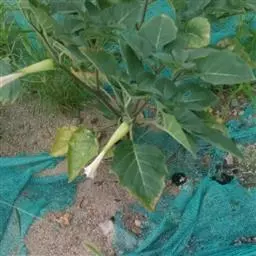 曼陀罗,茄科曼陀罗属一年生大型草本植物,全株光滑。有臭气;叶呈广卯形,…