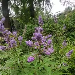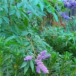 修剪更新:单叶蔓荆萌发力较强,耐修剪。通过修剪更新,萌发的新枝多,枝条粗壮,结果多,果实大,产量高。为使植株早日封行,在定植后的3-4年内,其主茎蔓不打顶,仅诱导其按规定方向生长,以求均匀分布于林地。