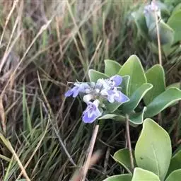 单叶蔓荆(学名:Vitex trifolia L. var. simplicifolia Cham. )是马鞭草科,牡荆属蔓荆的变种。落叶灌木,罕为小乔木,高可达5米,有香味;茎匍匐,节处常生不定根。单叶对生,叶片倒卵形或近圆形,顶端通常钝圆或有短尖头,基部楔形,表面绿色,两面稍隆起,。圆锥花序顶生,花序梗密被灰白色绒毛;花萼钟形,花冠淡紫色或蓝紫色,雄蕊伸出花冠外;子房、花柱无毛,核果近圆形,成熟时黑色;果萼宿存,7-8月开花,8-10月结果。