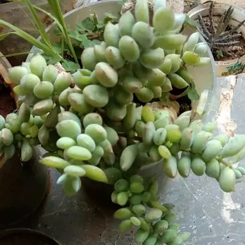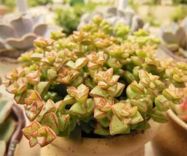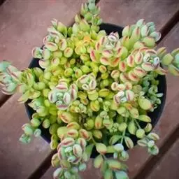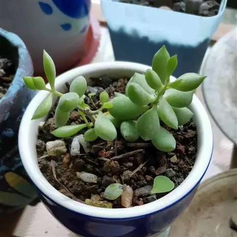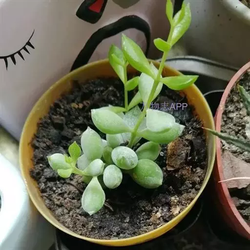 达摩福娘景天科银波锦属多肉植物,属于小型灌木类,由于杆子很细,所以很难支撑一直向上生长,会满满匍匐向下生长。出状态后,叶尖尖端呈粉红色。