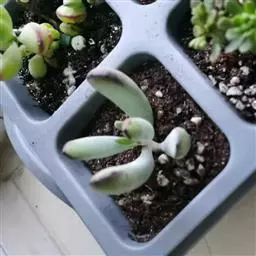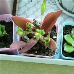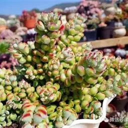 乒乓福娘,植株叶片退化成扁卵状,植株为直立的肉质灌木,能够长高。叶片对生,扁卵型至圆卵形,叶片顶端…