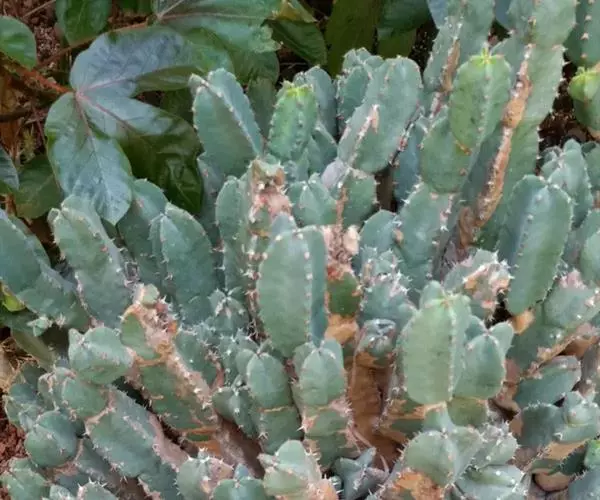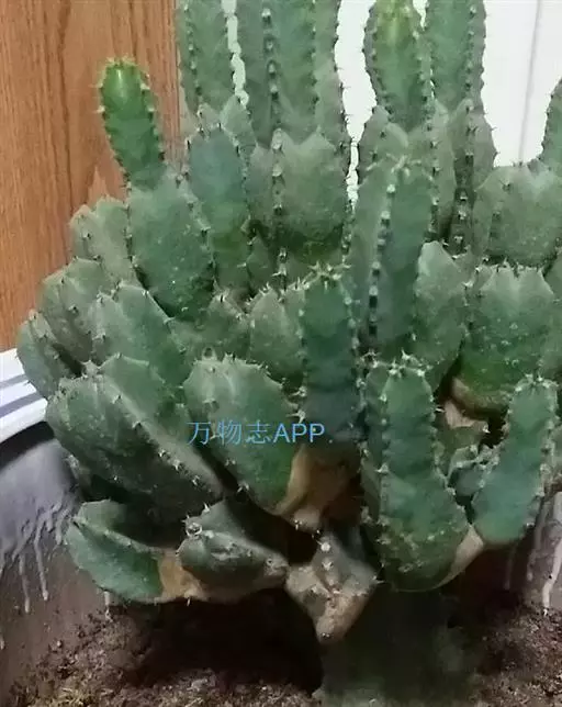 魁伟玉原产南非,是一种大戟科的多年生肉质植物,植株具粗圆筒形肉质茎,有10条以上的突出棱,…