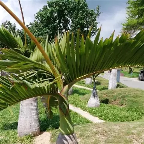 王棕O.F.Cook):又名大王椰子。乔木;单干,直立叶痕不明显,叶簇生于干顶,叶片大,长达3米以…