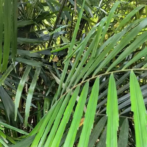 琼棕呈丛生灌木状,高3米或更高,具吸芽,从叶鞘中生出。叶掌状深裂,裂片14-16片,线形,长达50厘米,宽1.8-2.5厘来,先端渐尖,不分裂或2浅裂,中脉上面凹陷,背面凸起;叶柄无刺,顶端无戟突,上面具深凹槽。