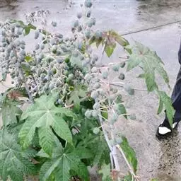 蓖麻是大戟科蓖麻属一年生粗壮草本或草质灌木。小枝、叶通常被白霜,茎直立,无毛,多液汁,绿色或稍带紫色,…