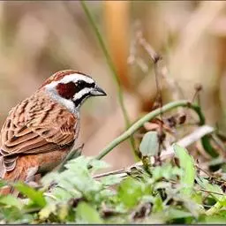 山麻雀:小型鸟类,体长13-15厘米。雄鸟上体栗红色,背中央具黑色纵纹,头棕色或淡灰白色,颏、喉黑色,…
